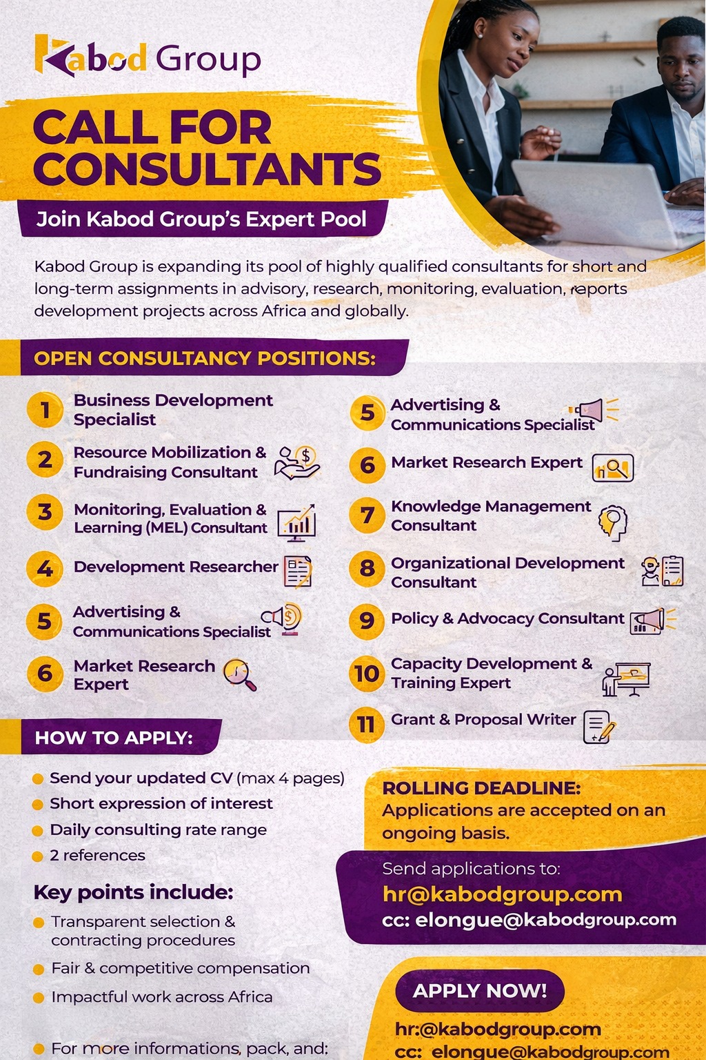 Join Kabod Group — Volunteer Vacancies (3-Month Pro-Bono) Communication & Knowledge Management Officer pro-bono fellowships are open