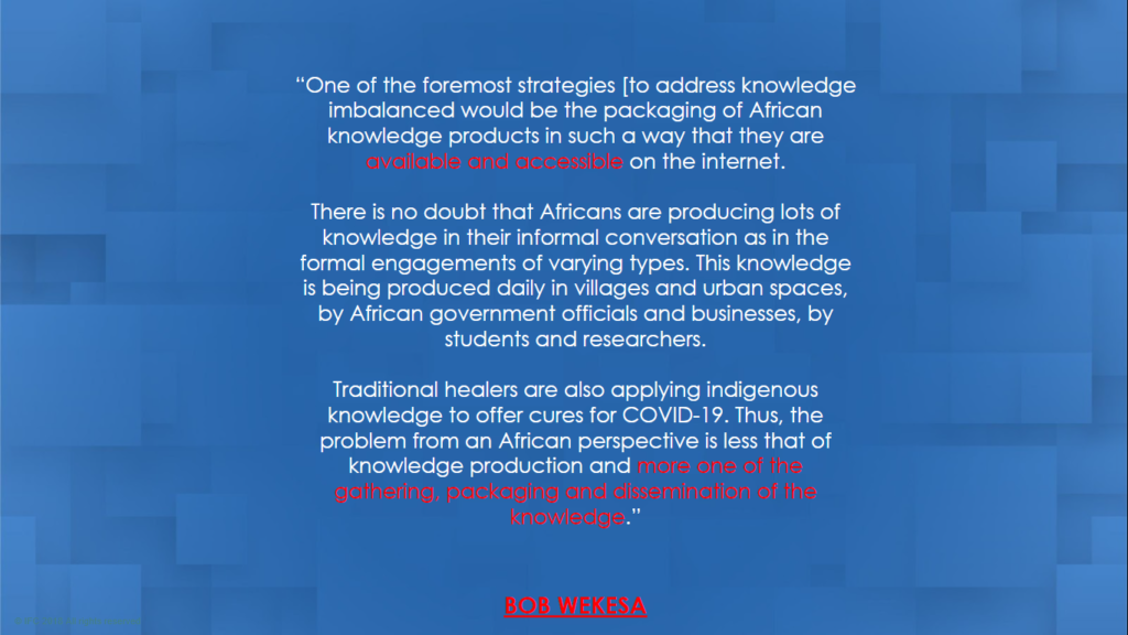 Participants indicated their worry about the methodological requirements governing writing. He indicated the importance of challenging the norms on the production of knowledge. In his closing remarks, the major take-away points for participants were to: